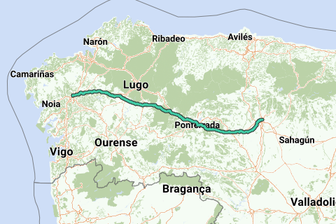 <p><a class="routeYou_embed" href="https://app.routeyou.com/en-es/route/view/5975624?utm_source=embed&utm_medium=article&utm_campaign=routeshare&navigation=external" title="León - Santiago de Compostela - RouteYou" target="_blank"><img src="https://image.routeyou.com/embed/route/960x670/5975624-en@2x.png" style="width: 100%; height: auto;" alt="León - Santiago de Compostela"></a></p>