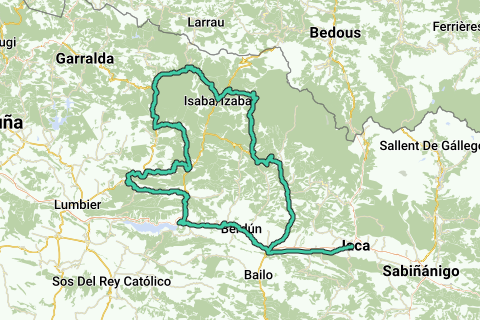From Jaca to Pte. la Reina, Hecho, Anso, Roncal, Isaba, Izalzu, Ezcaroz, Güesa, Vindagoz, Burgui, Navascues, Castillonuevo, Salvatierra de Esca, Sigües, Pte. la Reina and Jaca.