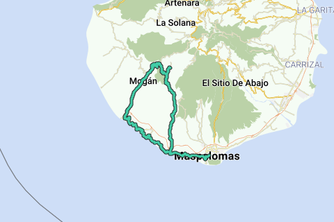 Von Playa del Inglés führt die Strecke über Sardina ins Inselinnere. Nach der Anstrengung der ersten Höhenmeter belohnt eine Höhenstraße mit traumhaftem Meerblick für die Mühen. Ab Agüimes zieht sich die an die Toskana erinnernde Panoramastraße über das schneeweiße Dorf
