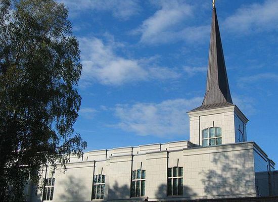 The Helsinki Finland Temple is the 124th operating temple of The Church of Jesus Christ of Latter-day Saints . Unlike LDS chapels, where worship services are held and visitors are welcome, the temple is open only to church members.