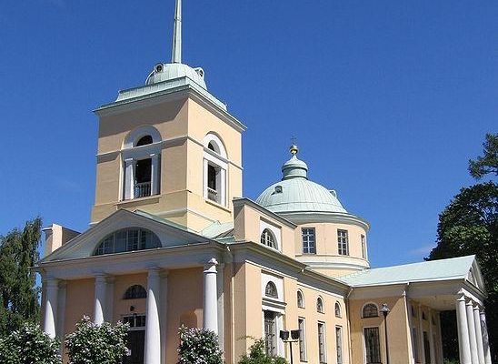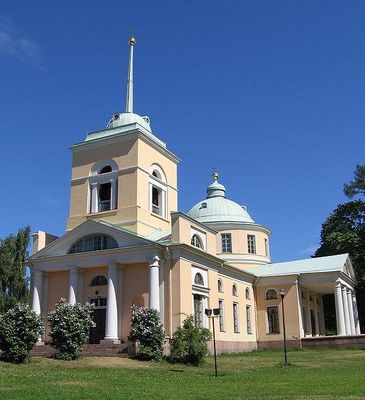 The St. Nicholas Church is the main church of the Kotka Orthodox Church in Kotka, Finland, surrounded by the Isopuisto park The church was built between 1799 and 1801 according to the drawings of architect Jakov Perrin. The church dates back to the time of the active years of the sea fortress of Ruotsinsalmi, when the Russians built the Ruotsinsalmi–Kyminlinna double fortress in the Kymi parish and a fortress town was created on Kotkansaari. The church is the oldest building in present-day Kotka, and it is a notable representative of Russian neoclassicism in Finland.