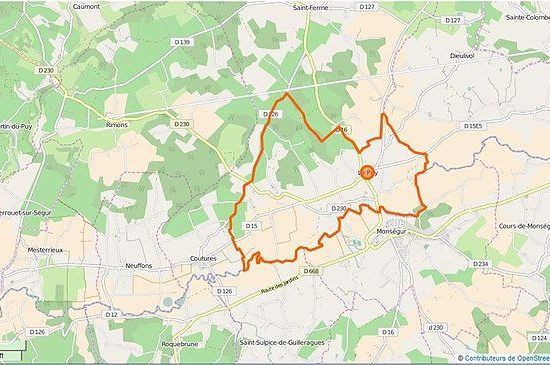 Le Puy lies 65 km from Bordeaux on the intersection of the D15 and the D16 and 1 km from Monségur across the river Dropt.