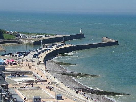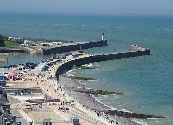 The lighthouse of Saint-Valery-en-Caux is a white cylindrical tower with a green lantern on a gallery located at the end of the west pier. It was built in 1882 and then modified in 1914.
