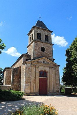 The "mountain" on the east rises to 370 meters, and the commune slopes gently down to the Saône. On the south lies the commune of Saint-Martin-Belle-Roche. The Mouge flows from west to east and into the Saône.