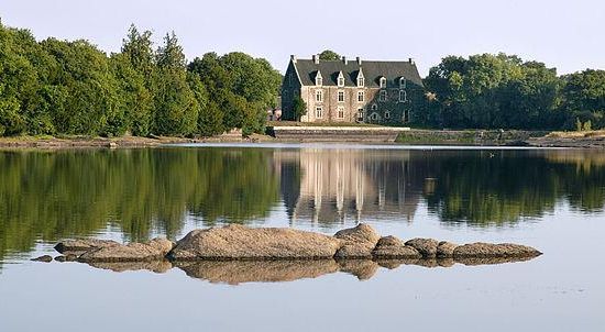 The Château de Comper is a former castle located in Paimpont forest , three kilometers to the east of the village of Concoret in the department of Morbihan in the region of Brittany, France. It has been rebuilt as a château. The name Comper, like Quimper, probably comes from the Breton word kemper, which means confluence. It is surrounded by several streams and lakes.