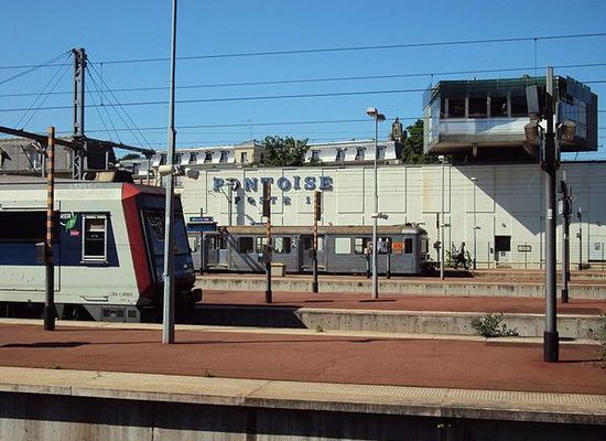 The station was opened to link Paris to Dieppe, it is parallel to the line with a long footbridge stretching over the lines to the Canrobert bus station. Trains no longer serve Dieppe but is well served by regional trains to Paris St-Lazare and Paris Nord. Pontoise Station is also served by RER C which uses a new bridge built of the River Oise to increase capacity.