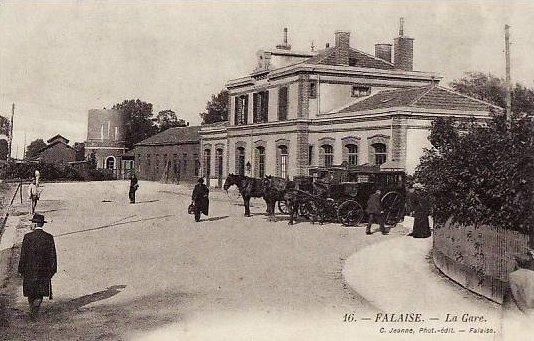 The station was built by the CF de l'Ouest in pure Ouest architecture, and opened on 1 November 1859. It saw the arrival of a line from Flers on 15 April 1874 and from Falaise-Château by the Calvados railway in 1904 ).