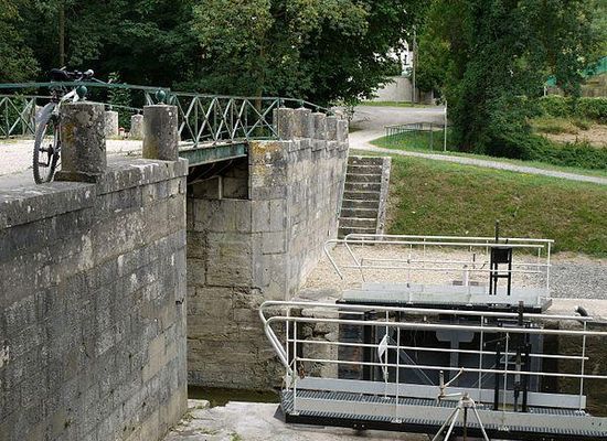 Philippe II, Duke of Orléans sought letters patent to build the canal in 1720, and it was completed in 1723. 3815 barges passed through in 1752 alone. Lock 20 is disused today, leaving 19 locks. The total fall is about 37m.