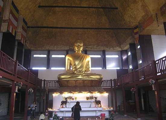 The Pagode du bois de Vincennes is the seat of the Institut international bouddhique founded by Jean Sainteny who was the manager of the institute. It is located in a former building of the exposition coloniale de 1931, designed by the architect Louis-Hippolyte Boileau. On this 8 000 m² site on the edge of the lac Daumesnil are located two buildings of remarkable architecture. The most important one, the former house of Cameroon, was restored in 1977 and transformed in a pagoda as a place of worship. The second is the former house of Togo is slated for restoration by the City of Paris. It will contain a library for texts on the various Buddhist traditions.