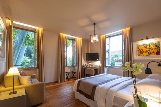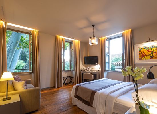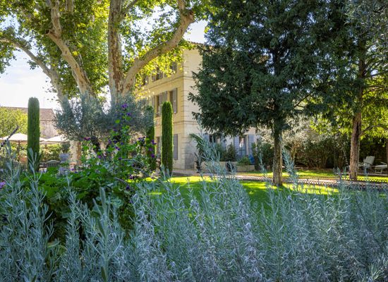 At the foot of the Montagnette and its medieval castle, a bastide house renovated as a charming hotel welcomes visitors to a haven of peace, where three-hundred-year-old plane trees keep the place cool.