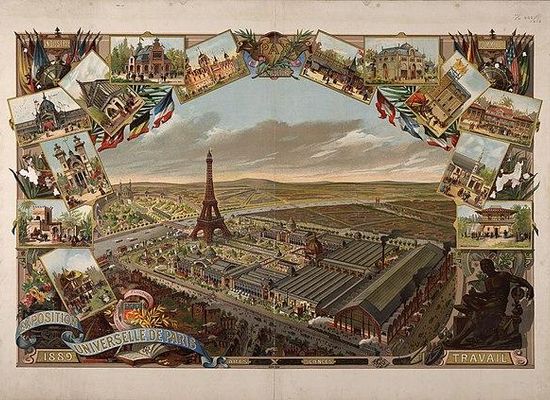 The Exposition Universelle of 1889 was a world's fair held in Paris, France, from 5 May to 31 October 1889. It was the fourth of eight expositions held in the city between 1855 and 1937. It attracted more than thirty-two million visitors. The most famous structure created for the Exposition, and still remaining, is the Eiffel Tower.