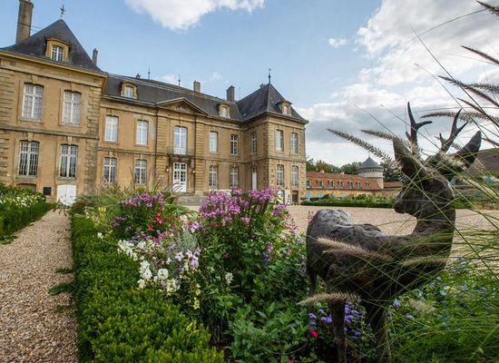 A suspended moment, not quite in the country but far from the noise of the city, so close. The long tree-lined driveway leads me to Château de la Grange. I arrive in the gravel courtyard. Watch your shoes! Avoid heels, prefer sneakers. No castle today, I'm concentrating on the garden. Spring arrives as boxwood, lilies and meadow flowers greet and smile at me. The season begins. In front of me, green giraffes and deer brighten up the lawns and amaze me. Benches invite me to settle down and enjoy the silence. Further on, a greenhouse - rather modern, I might add - houses the plantations. Next year, I'll be greeted by new, colorful, flowering faces. I close my eyes and let the sun warm my face. Little birds sing, I smell the tickling scents of nature. And yet I'm not so far from Thionville.