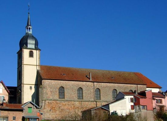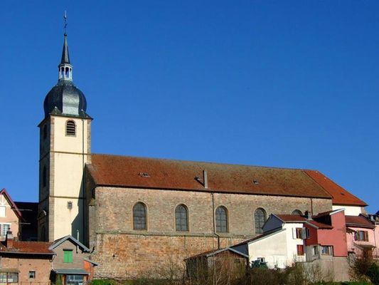 In his account, Bernhardt gives the following details of the construction of this new church: "What remained of the Château was buried under 5 meters of earth and rubble. Only the outer walls remained. The huge belvedere formed by the earthworks became private property. Behind the church, as far as the Porte Saint-Nicolas, the old ground formed a sunken path, which was not filled in until 1755. At that time, the Presbytery and its outbuildings were built where they still stand today". The massive tower is surmounted by a bulbous belfry topped by a bell tower. It's a perfect example of a barn church, i.e., one without pillars.