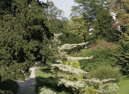 This hilly garden, isolated from the surrounding boulevards, is also of botanical interest.