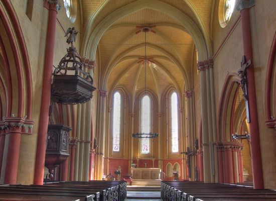 It was built on the site of a former chapel (7th) its tower is the oldest monument of Longuyon. The current building (M.H.) does not go back beyond the end of the XIIIth. Statue of the Holy Patron Saint (XIVth). A painting representing the martyrdom of St. Agatha and several statues are listed in the I.S.M.H. Restored church. Every day on request: individual or group visit with an explanatory leaflet or a tour with sound in French, English or German for a duration of 20 minutes.