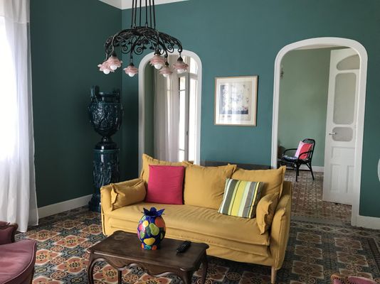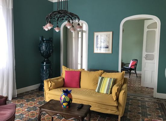 Beautiful and spacious 130m2 1925 apartment, renovated in 2018. Three bedrooms and a large double living room, 5mn walk from Perpignan train station and 12mn walk from downtown. The decor combines antique and contemporary furniture in a colorful, comfortable setting.