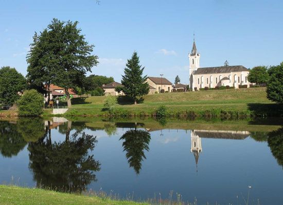 Picnic area on the site of the fishing lake, near the church, in a green, bucolic setting. Nearby: pétanque court, hiking trail.