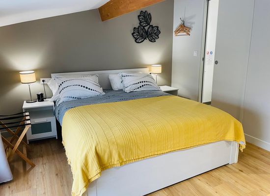 This fully renovated studio is located near the Listrac Médoc vineyards and the Médoc forest. The bright living room features a fully-equipped kitchen, a 160 x 200 bed with sheets/duvets provided, and an en-suite shower room. The kitchen is fully equipped. The studio is part of the Domaine de Ludeye and benefits from its various services: swimming pool, bike hire, gym. It's the ideal place for a relaxing stay in the Sud Médoc, or for an internship or training course.