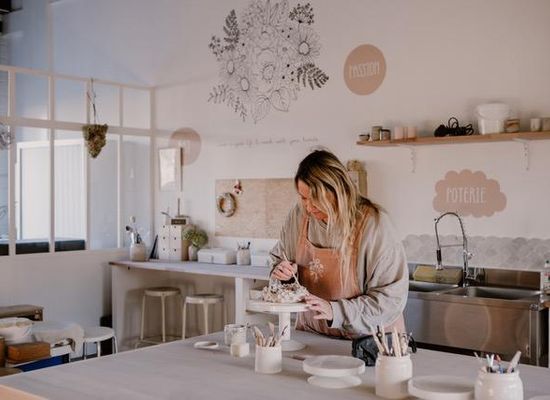 I offer pottery classes and workshops in my Terres bohèmes studio, in a bright, welcoming space. There are modeling classes for adults and children aged 7 and over, as well as throwing classes for those aged 15 and over. There is also my boutique at the entrance to the studio, with my bohemian and poetic-inspired pieces in stoneware and porcelain, dedicated to tableware, decoration and lighting.
