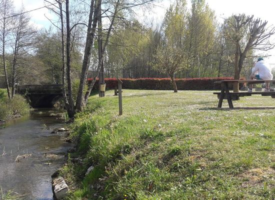 On the edge of the Salembre and a stone's throw from the Biscotterie La Chantéracoise, sunny picnic area (one table).