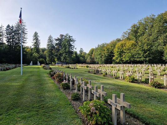 Along the Haute Chevauchée forest road, stop off at the Forestière national necropolis, where blue, white and pink hydrangeas bloom between each grave, thanks to the initiative of the Comtesse de Martimprey.