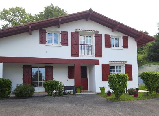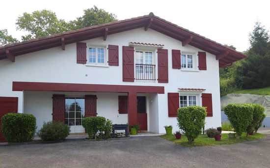 Flat on 1st floor of house (94m²). 20 minutes from Basque Coast and 1 hour from mountains; 1km town centre, shops and horseriding stables. Entrance, sitting/living room with double sofabed + fully equipped open plan kitchen + washing machine, 3 rooms with double bed, bathroom, WC. TV, payphone, covered terrace with garden furniture, barbecue, private parking space.