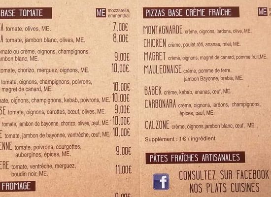 La pizzéria de l'Europe offers its fresh pizzas and pastas, cooked lasagnes, fresh ravioli, potato gnocchi, tiramisus to take away in the centre of Mauléon-Licharre, the capital of espadrille
