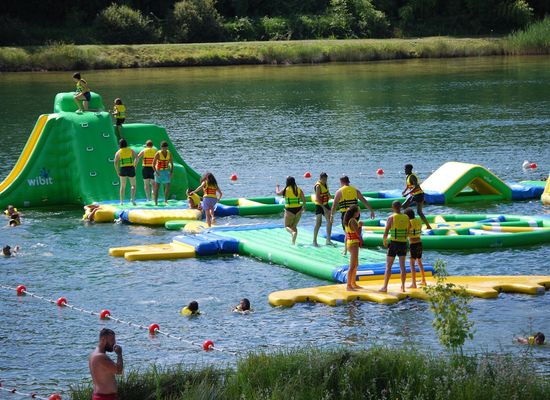 Jump, slide, dive on the new aquatic attraction of the Nantheuil water park. With family or friends, come and test the 21 modules of a fun and playful acrobatic course. Accessible to children from 6 years old. From 6 to 10 years old accompanied by an adult. Supervision provided by qualified personnel.