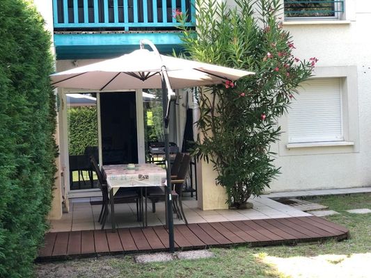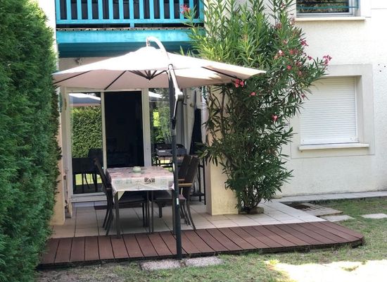 APARTMENT 47 m² for 4 people. Ideally located, close to the train station, the oyster port, shops and bike paths. Small residence with swimming pool and parking. Garden level with terrace, plancha, garden furniture, deckchairs, parasol. 1 bedroom (sleeps 140), living room with sofa bed 140, flat screen TV, DVD. Equipped kitchen, dishwasher, washing machine, microwave, fridge, freezer. Bathroom with shower.