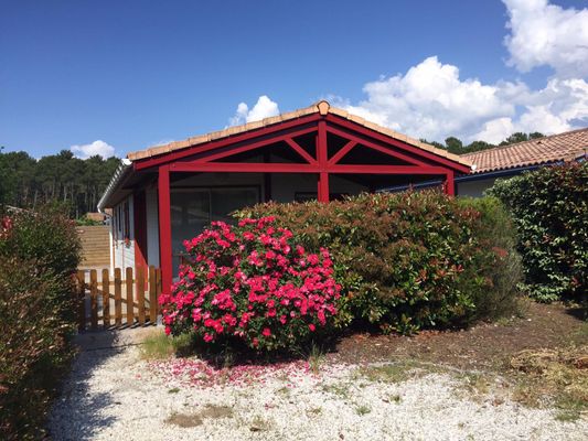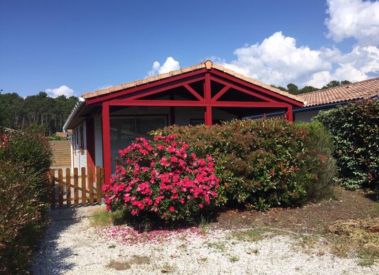 Three room 15m² chalet with covered terrace, garden furniture and 2 sun loungers in a family-friendly holiday centre with spa and pool.