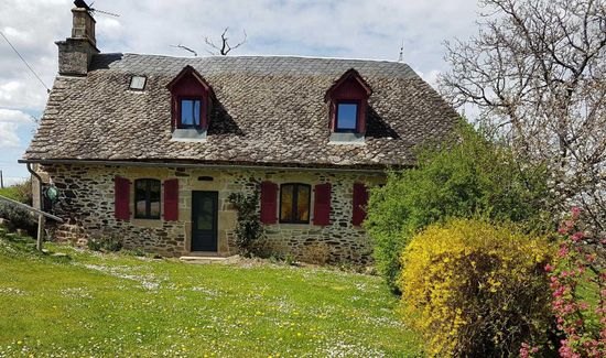 Detached cottage set in 1400 m² of land 3 km from the village. It offers a breathtaking view of the village below. Altitude 450 m. This charming character house has been entirely renovated in the traditional style, with stone walls, slate roof, exposed beams, "Cantou" and "Bassière". Nearby: trout rivers, numerous hiking and mountain bike trails.