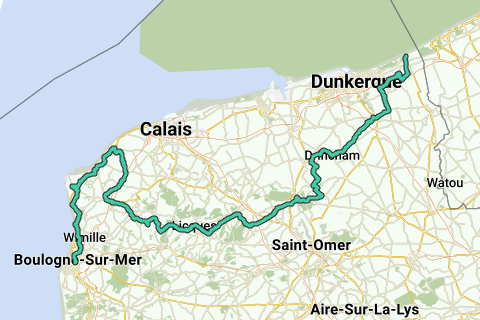 Driving through the marshes and along the capes of Côte d'Opale. This route takes you past places like: Kassel, De Panne (Calais is avoided), Boulogne sur Mer to return to start and finish in Montreuil sur Mer.