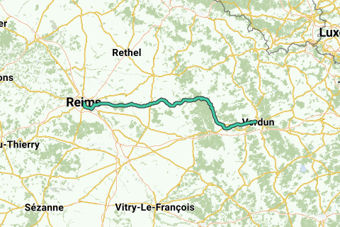 <p><a class="routeYou_embed" href="https://app.routeyou.com/en-fr/route/view/13278484?utm_source=embed&utm_medium=article&utm_campaign=routeshare&navigation=external" title="Verdun - Reims - RouteYou" target="_blank"><img src="https://image.routeyou.com/embed/route/960x670/13278484-en@2x.png" style="width: 100%; height: auto;" alt="Verdun - Reims"></a></p>
