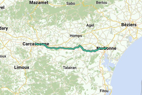 <p><a class="routeYou_embed" href="https://app.routeyou.com/en-fr/route/view/2928317?utm_source=embed&utm_medium=article&utm_campaign=routeshare&navigation=external" title="Carcassonne to Narbonne - RouteYou" target="_blank"><img src="https://image.routeyou.com/embed/route/960x670/2928317-en@2x.png" style="width: 100%; height: auto;" alt="Carcassonne to Narbonne"></a></p>