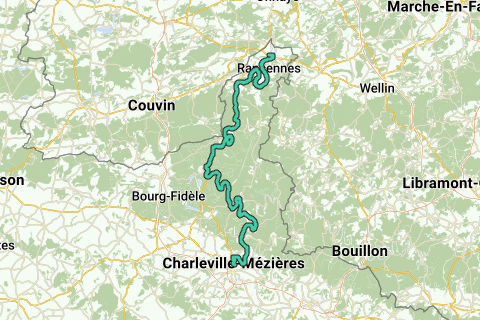 Almost traffic-free, paved route along the Meuse, just over the border. The river has carved a deep valley along this stretch. Besides the wild nature, you pass through picturesque villages/towns. The route was awarded the title "bicycle route of the year 2008" in the Netherlands. Last but not least: on the other side runs a railway line with several stations, making it possible to return to the starting point. Bicycles can travel for free on the train. (timetable http://www.ter.sncf.com/grand-est > travel > timetable sheets > line C07)
