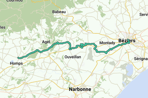 <p><a class="routeYou_embed" href="https://app.routeyou.com/en-fr/route/view/5465453?utm_source=embed&utm_medium=article&utm_campaign=routeshare&navigation=external" title="1 - Beziers to Olonzac - RouteYou" target="_blank"><img src="https://image.routeyou.com/embed/route/960x670/5465453-en@2x.png" style="width: 100%; height: auto;" alt="1 - Beziers to Olonzac"></a></p>