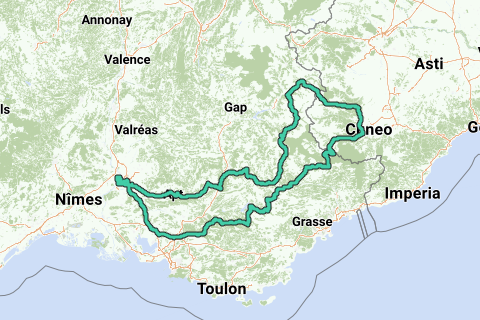 <p><a class="routeYou_embed" href="https://app.routeyou.com/en-fr/route/view/6361327?utm_source=embed&utm_medium=article&utm_campaign=routeshare&navigation=external" title="High Provence, Piedmont, Verdon - RouteYou" target="_blank"><img src="https://image.routeyou.com/embed/route/960x670/6361327-en@2x.png" style="width: 100%; height: auto;" alt="High Provence, Piedmont, Verdon"></a></p>