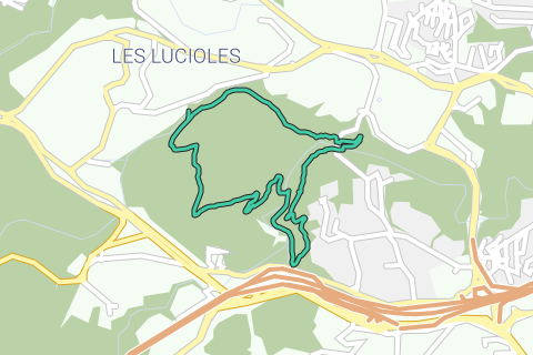 Asphalt, concrete, and small roads are what you will find along this route. Along this route is the Novotel Antibes Sophia Antipolis hotel. You can also start there (but it's not necessary). The places where you can get a drink are not too many, but they are certainly there. The walking route starts at the parking lot.
