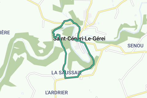 Some pretty roads and walking trails in Saint-Céneri-le-Gérei In dry weather, it can be a bit dusty along the unpaved roads. Those who love water will find their happiness along this route. The walking route starts at the parking lot.