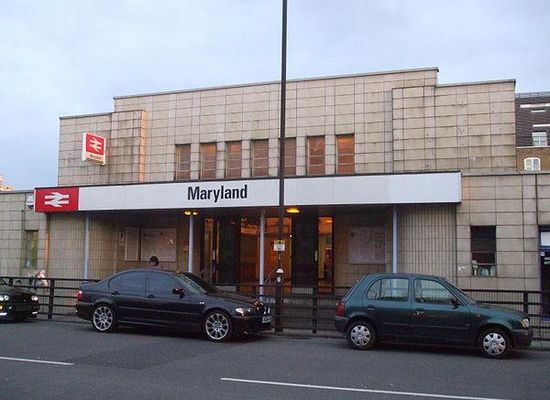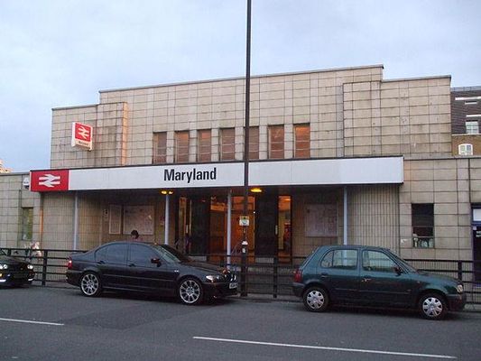 Maryland railway station is on the Great Eastern Main Line serving the locality of Maryland in the London Borough of Newham, east London. It is 4 miles 39 chains down-line from London Liverpool Street and is situated between Stratford and Forest Gate. Its three-letter station code is MYL and it is in fare zone 3.