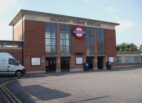 Sudbury Town () is a London Underground station on the Uxbridge branch of the Piccadilly line. The station is between Alperton and Sudbury Hill, and is in Travelcard Zone 4. It is located on the border between the London Boroughs of Brent and Ealing, with its main entrance on Station Approach in Sudbury. The forecourt of the station is known as Station Crescent. The station serves Sudbury, which forms the western part of Wembley.