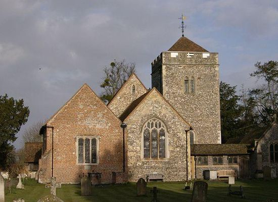 In the name Stoke Poges, stoke means "stockaded " that is staked with more than just boundary-marking stakes. In the 1086 Domesday Book, the village was recorded as Stoche. William Fitz-Ansculf, who held the manor in 1086 , later became known as William Stoches or William of Stoke. Amicia of Stoke, heiress to the manor, married Robert Pogeys, Knight of the Shire, 200 years later and the village eventually became known as Stoke Poges. Robert Poges was the son of Savoyard Imbert Pugeys valet to King Henry III and later steward of the royal household. Poges and Pocheys being an English attempt at Pugeys which ironically meant “worthless thing”. The spelling appearing as "Stoke Pocheys", if applicable to this village, may suggest the pronunciation of the second part had a slightly more open "o" sound than the word "Stoke".