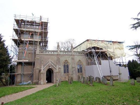 The Grade II listed parish church at Raithby is dedicated to St Peter and dates from the late 13th century, although it was rebuilt in rendered brick in 1839 by W. A. Nicholson, paid for by Revd Henry Chaplin. It includes a late-13th-century north arcade, a 15th-century font, and some 16th-century imported glass. The chancel was restored in 1883 by C. H. Fowler.