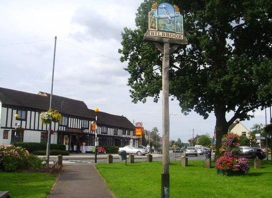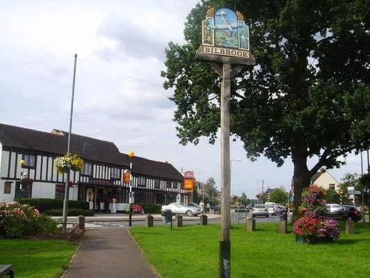 Bilbrook is a village in the South Staffordshire district of Staffordshire, England. It is situated close to the border of the West Midlands, just outside Wolverhampton. Bilbrook is often overshadowed by the adjacent Codsall village but has its own separate identity. The village gets its name from billers , which grew in the local Moat Brook until recent times. The Moat Brook rises in Chillington Estate and Oaken Village, it runs into the River Penk in Pendeford Mill Nature Reserve. The river continues, where it joins the River Sow, which joins the River Trent which joins the River Humber and eventually flows into the North Sea from the Humber Estuary, near Grimsby, Lincolnshire. The village is connected to Wolverhampton by bus services 5 and 10B , both operated by National Express West Midlands.