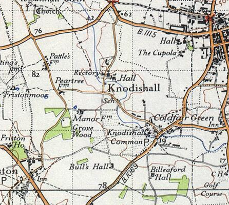 "Roger Bigod was the chief landholder here in 1086. Ranulf FitzWalter held 80 acres from him. Another 30 acres held by Roger Bigod had belonged before the Conquest to Edward the Confessor's free man, Boti. It had once been held by William Malet, while Robert Malet held the soke. An area of 80 acres in Knodishall formed an outlying estate or berewick of Bigod's manor in Saxmundham. John Jenney is known to have been lord there at his death in 1460.