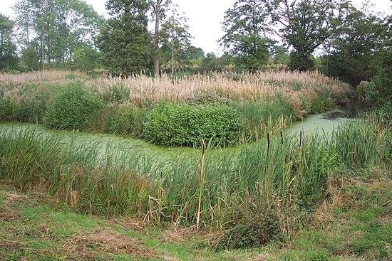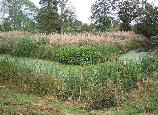 Ufton Nervet is a strip parish about 4.5 miles long and up to 1 mile wide, running roughly north-northwest – south-southeast between the Kennet valley and the crest of low hills in its south. It is bounded to the north by the A4 road, to the south by a minor road linking Burghfield and Tadley, and to the west and east by a mixture of field boundaries and minor roads. It includes a section of the River Kennet, the Kennet Navigation and the railway between Reading and Taunton.