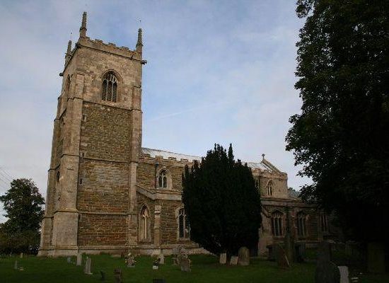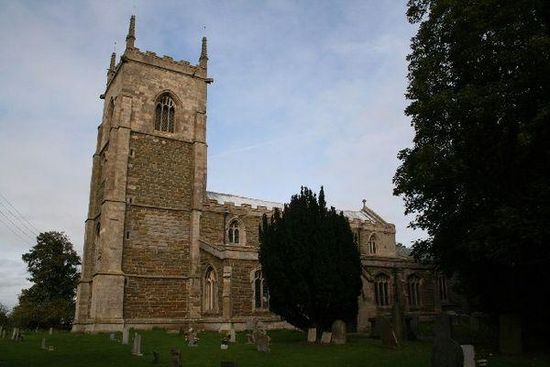 The parish church is dedicated to All Saints and is a Grade I listed building built of greenstone, dating from the 14th century. Monuments inside the church include kneeling alabaster effigies to Sir Valentine Browne and Elizabeth his wife, with their fifteen children in relief below. Its inscription states that Browne was "Treasurer and Vittleter of Barwicke and dyed Treasurer of Ireland". A related alabaster monument is to Valentine Browne's son John Browne , and his wife Cicely . A further monument is to William Bonde , erected by his son Nicholas, President of Magdalen College, Oxford. In the floor of the south aisle and chantry is a late 13th or early 14th century brass, the half effigy of a knight in banded mail. A tablet on the south side of the tower mentions a restoration of 1656; the church was again restored in 1857.