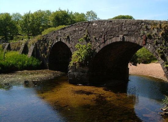 Two Bridges is an isolated location on the river West Dart in the heart of Dartmoor National Park in Devon, England. It is situated around 2.5 km north east of Princetown at the intersection of the two roads that cross Dartmoor: one is the old turnpike road which was built across Dartmoor in the late 18th century ; the other is the B3357.