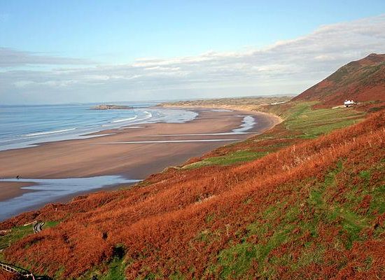 Rhossili is both a small village and a community on the southwestern tip of the Gower Peninsula in Wales. It is within the first Area of Outstanding Natural Beauty in the United Kingdom. The village has a community council and is part of the Gower parliamentary constituency, and the Gower electoral ward. At the 2011 census, the population was 278. The community includes the hamlet of Pitton.