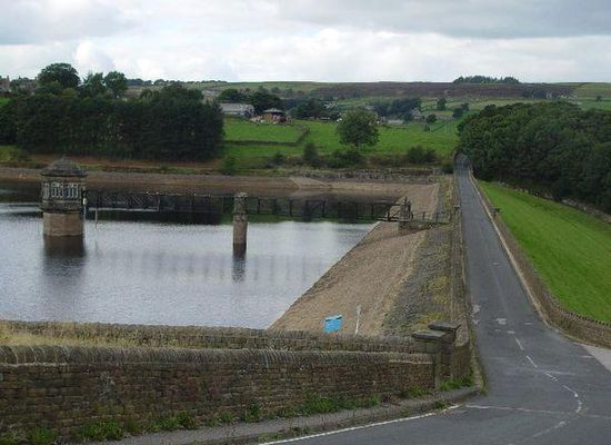 Lower Laithe Reservoir is a man-made upland reservoir that lies 1.2 miles west of Haworth, West Yorkshire, England. The reservoir was initially approved under the Keighley Waterworks and Improvement Act of 1869 but work did not begin on its construction until 1911 and even then was delayed because of the First World War. The reservoir was officially opened in August 1925 in front of a crowd of over 8,000 people. Its final tally on cost was £500,000. The reservoir lies in the Sladen Valley and was often referred to as Sladen Valley Reservoir.